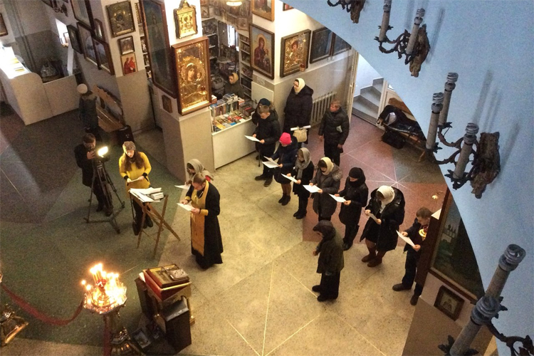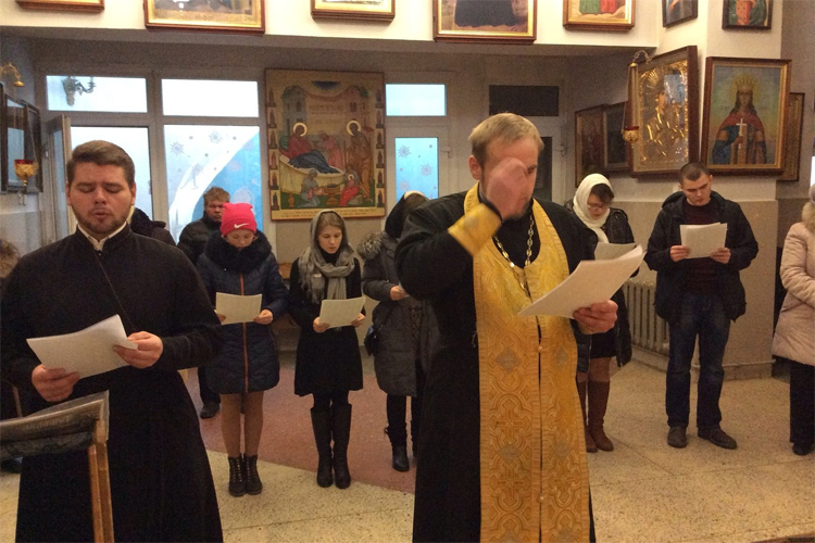 За богослужением молились активисты молодежного православного братства святых Петра и Февронии Муромских при приходе кафедрального Христорождественского собора города Солигорска.