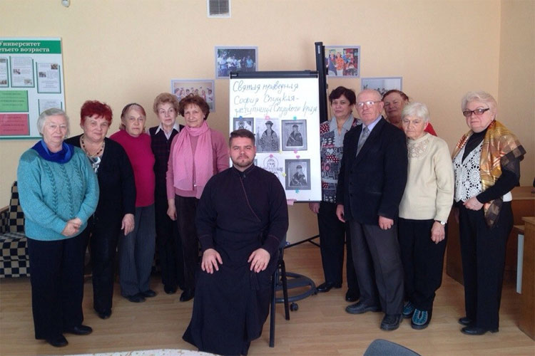 О святой Софии Слуцкой Виктор Бровушкин рассказал и слушателям Университета третьего возраста, который функционирует на базе ГУ «Солигорский районный центр социального обслуживания населения». Здесь разговор был долгим и обстоятельным. В ходе обсуждения были затронуты многие аспекты жизни современного общества и взгляд на них с точки зрения православного человека. Есть договоренность с руководством центра социального обслуживания населения о том, что духовные беседы станут в Университете третьего возраста регулярными.