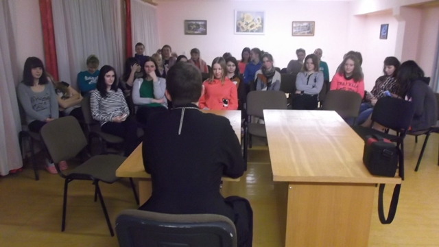 3 февраля для учащихся первых и вторых курсов педагогического отделения беседу на тему «Духовное богатство человека» провел клирик кафедрального собора Рождества Пресвятой Богородицы (Солигорск) Сергий Чукович.