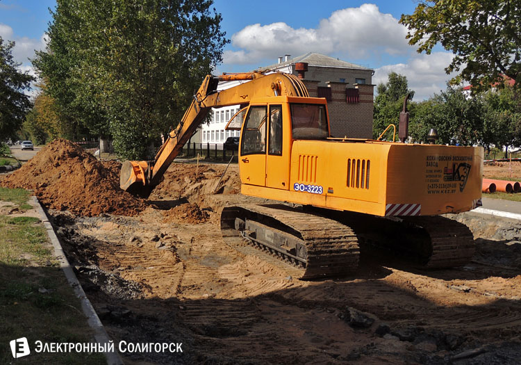 На улице Строителей (около военкомата) идут ремонтные работы.