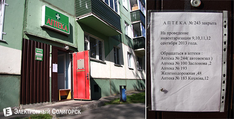 С 9 по 12 сентября солигорчане не смогут воспользоваться услугами аптеки № 243, расположенной на ул.Ленина, 2. Как свидетельствует объявление на входной двери, круглосуточная аптека временно будет закрыта в связи с проведением инвентаризации.