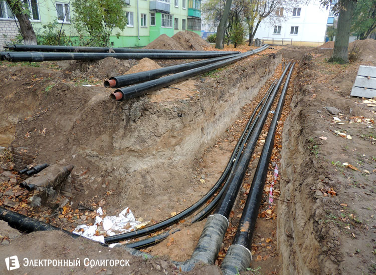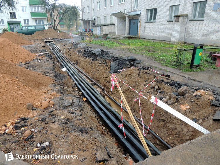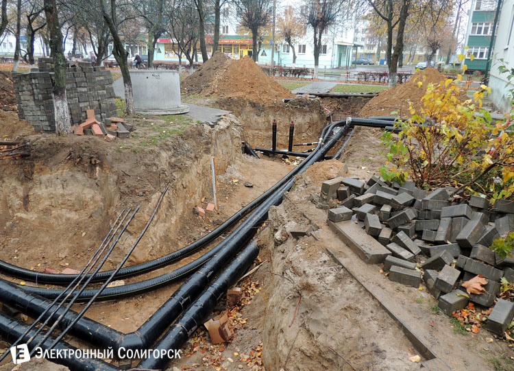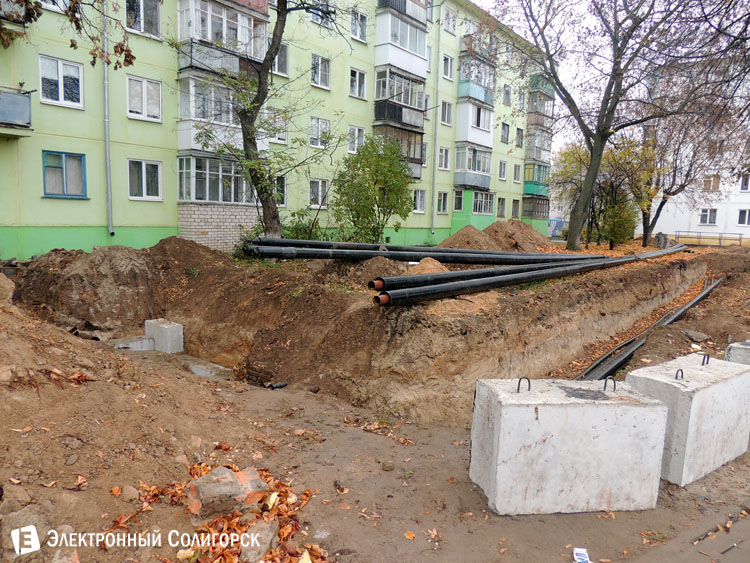 Во дворе дома № 12 по улице Козлова корреспондентом "Электронного Солигорска" была обнаружена активная и масштабная работа по замене теплотрассы.