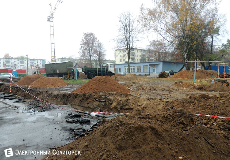 Двор буквально опутан сетью выкопанных ям, где и предстоит основная работа. Учитывая, что совсем рядом возводится многоквартирный дом, можно предположить, что жителям этого района еще продолжительное время терпеть неудобства во дворе.