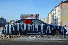 Фотофакт. Оригинальная уличная реклама автомагазина в Солигорске