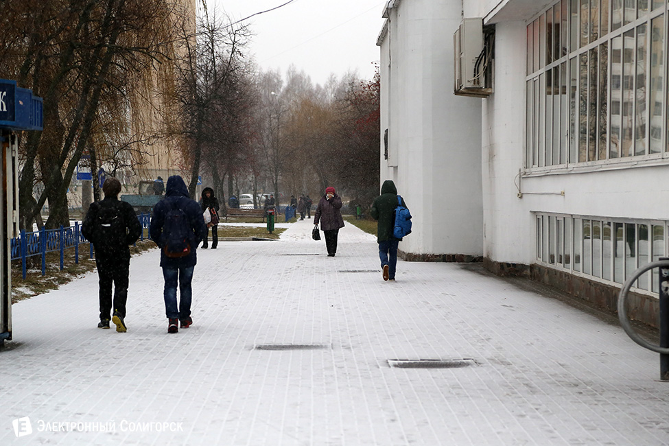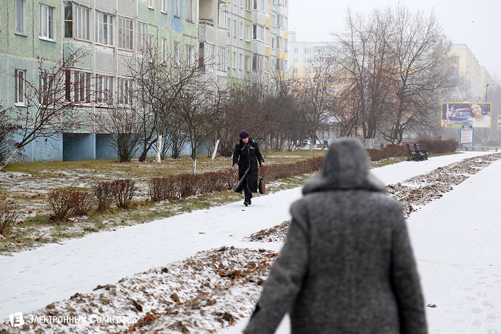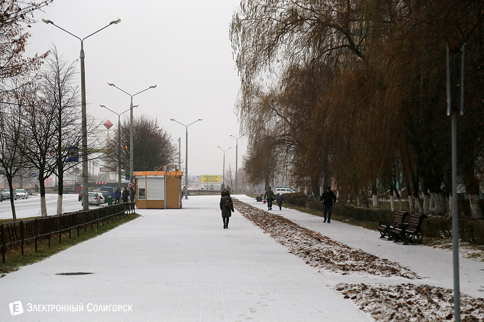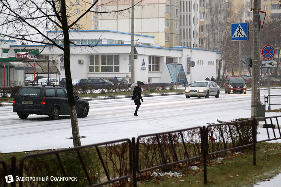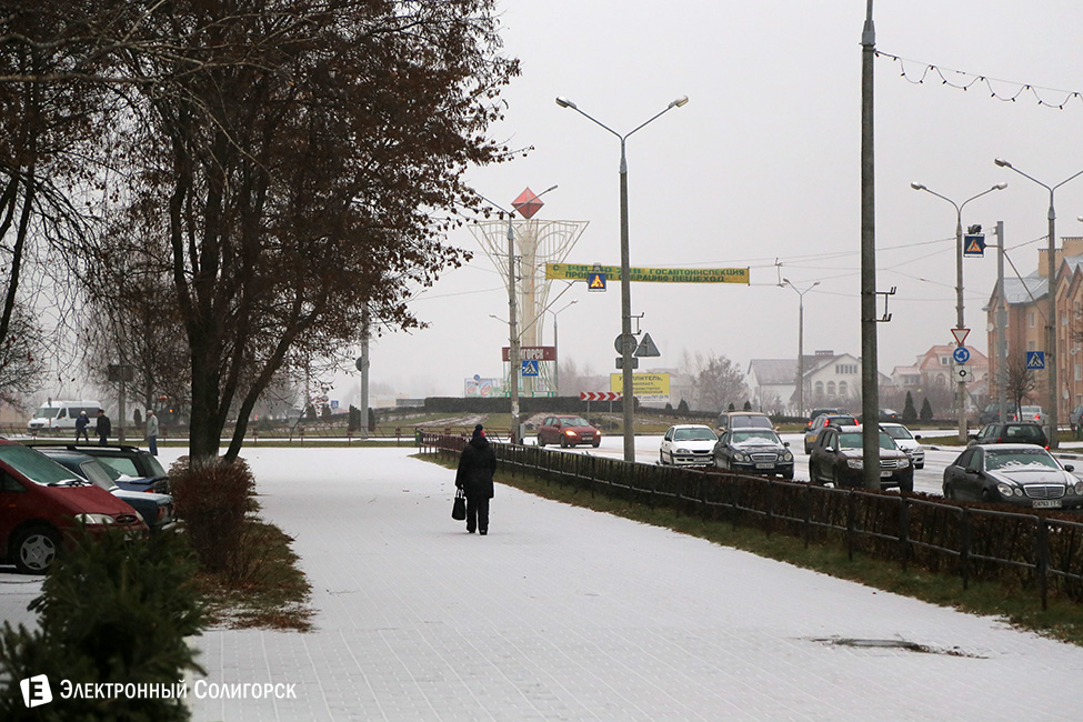 Для любителей статистики и точных данных сообщаем, что первый снег очередной зимы в Солигорске выпал 20 ноября около 9.30 утра. Случилось это, как и всегда, внезапно для многих. Одновременно с началом первой легкой метелицы фотокорреспондент "Электронного Солигорска" зафиксировал первые климатические признаки приближающейся зимы на в одночасье побелевших улицах города.
