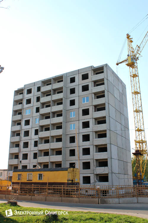 На сегодняшний день возведение девятиэтажного здания полностью завершено. Строители приступили к установке окон в квартирах будущих жильцов.