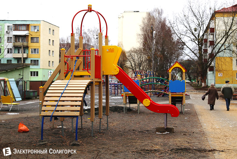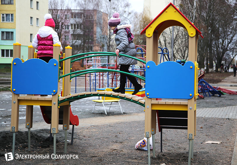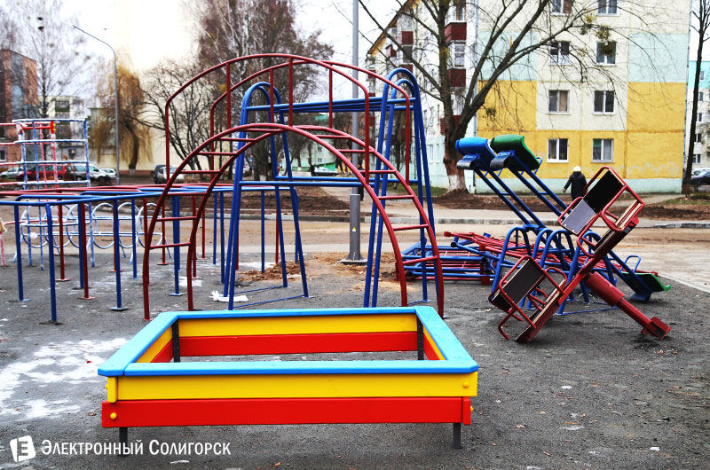 Рядом со строящимся ну улице Козлова в Солигорске 10-этажным жилым домом "Сапфир" возводится большая детская площадка.