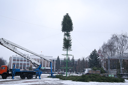 Комплекс новогодних украшений на площадке возле здания управления ОАО "Беларуськалий" в этом году дополнит ёлка. Работы по установке сейчас ведутся.