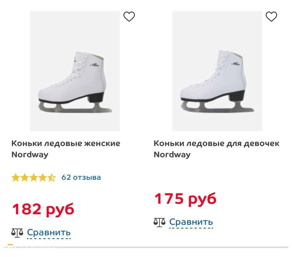 Коньки с ботинками из искусственной кожи более доступны в плане цены: от 75 рублей. Их преимущество в том, что они очень лёгкие.