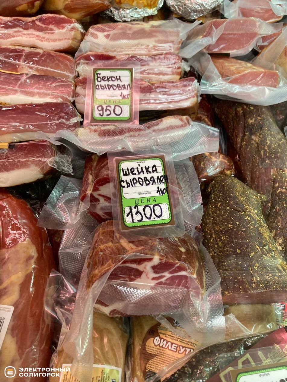 Сервелат с телятиной – 800 рублей (27.9 BYN), вырезка элитная – 1250 рублей (43.68 BYN).