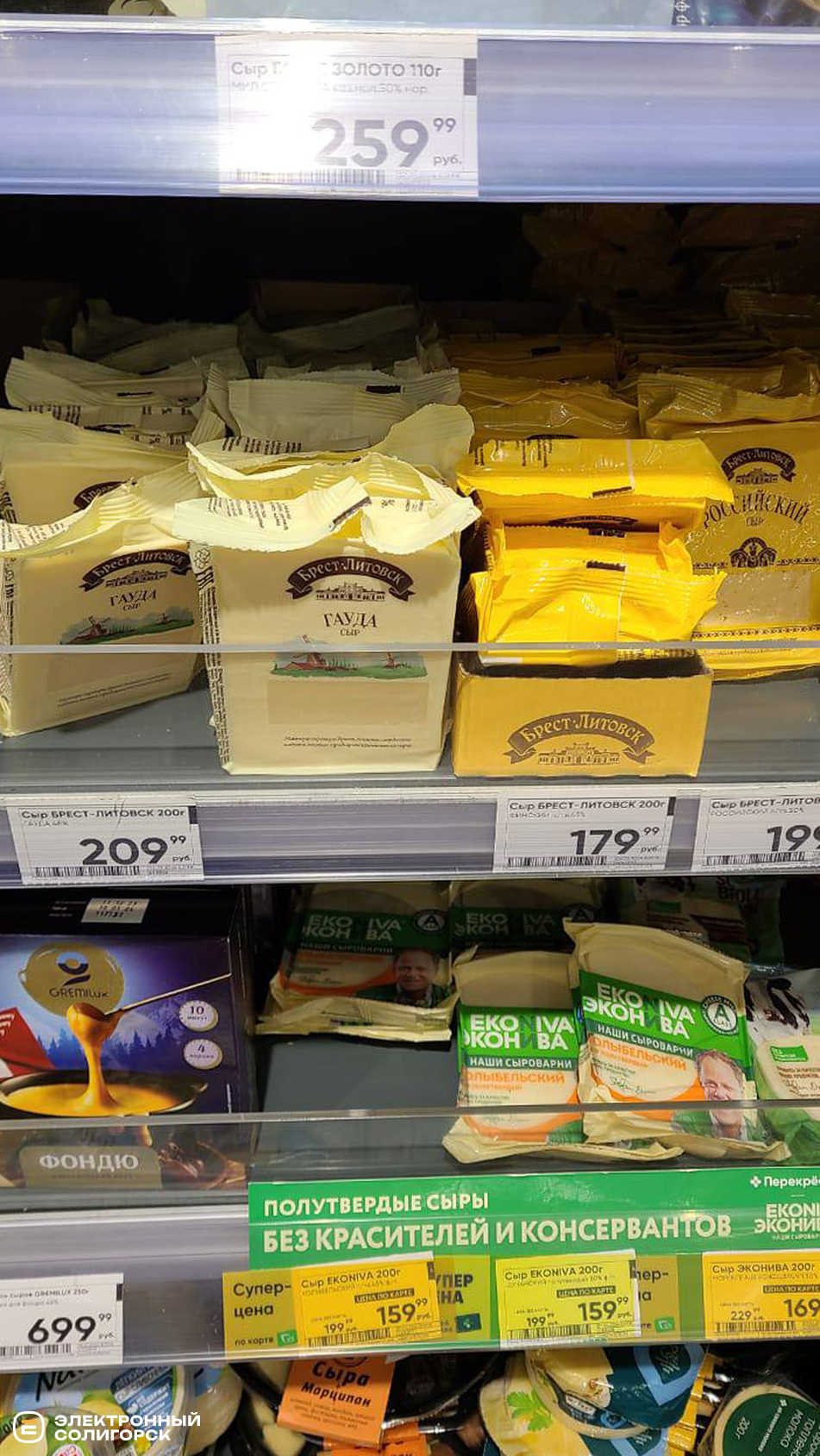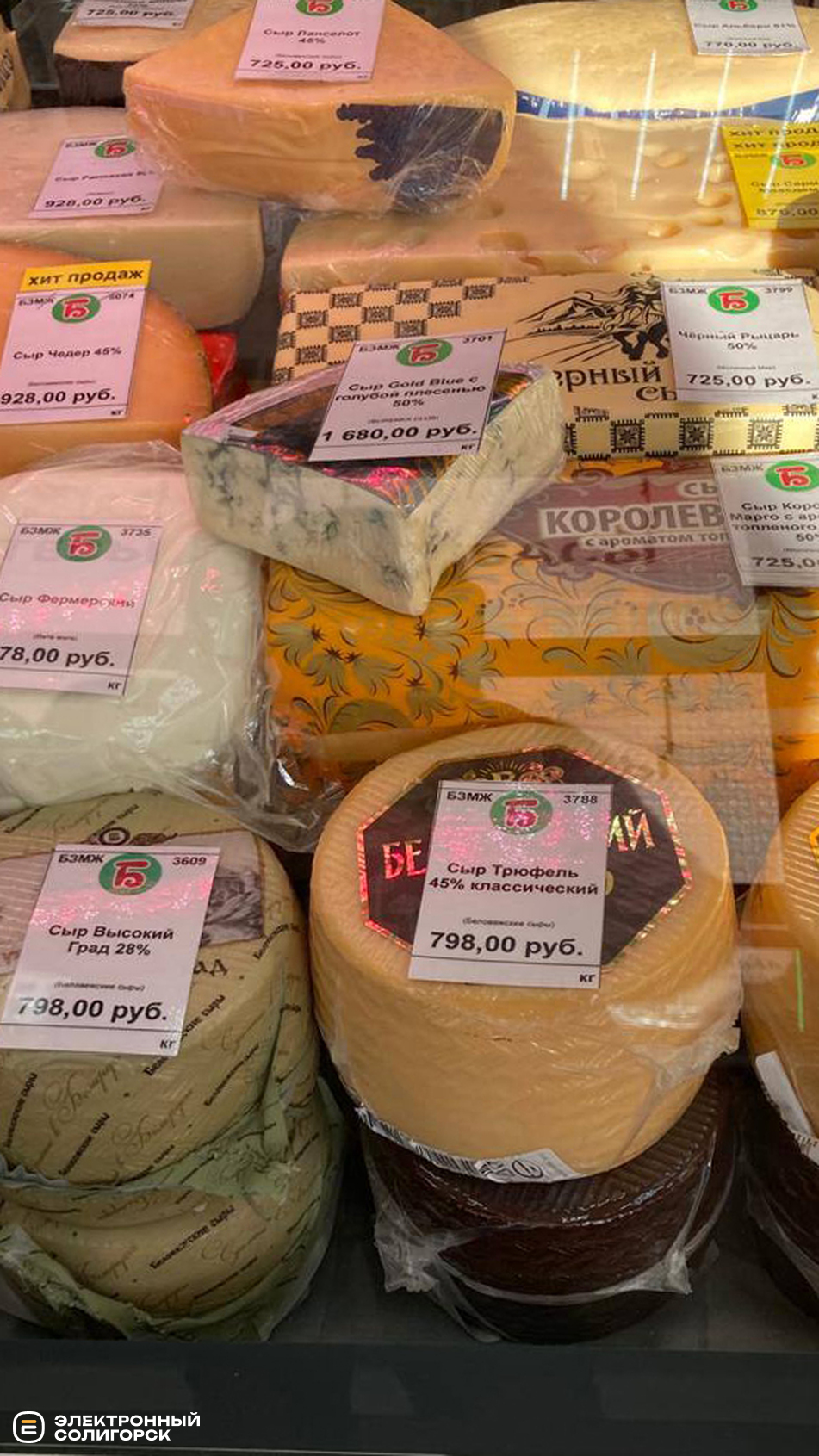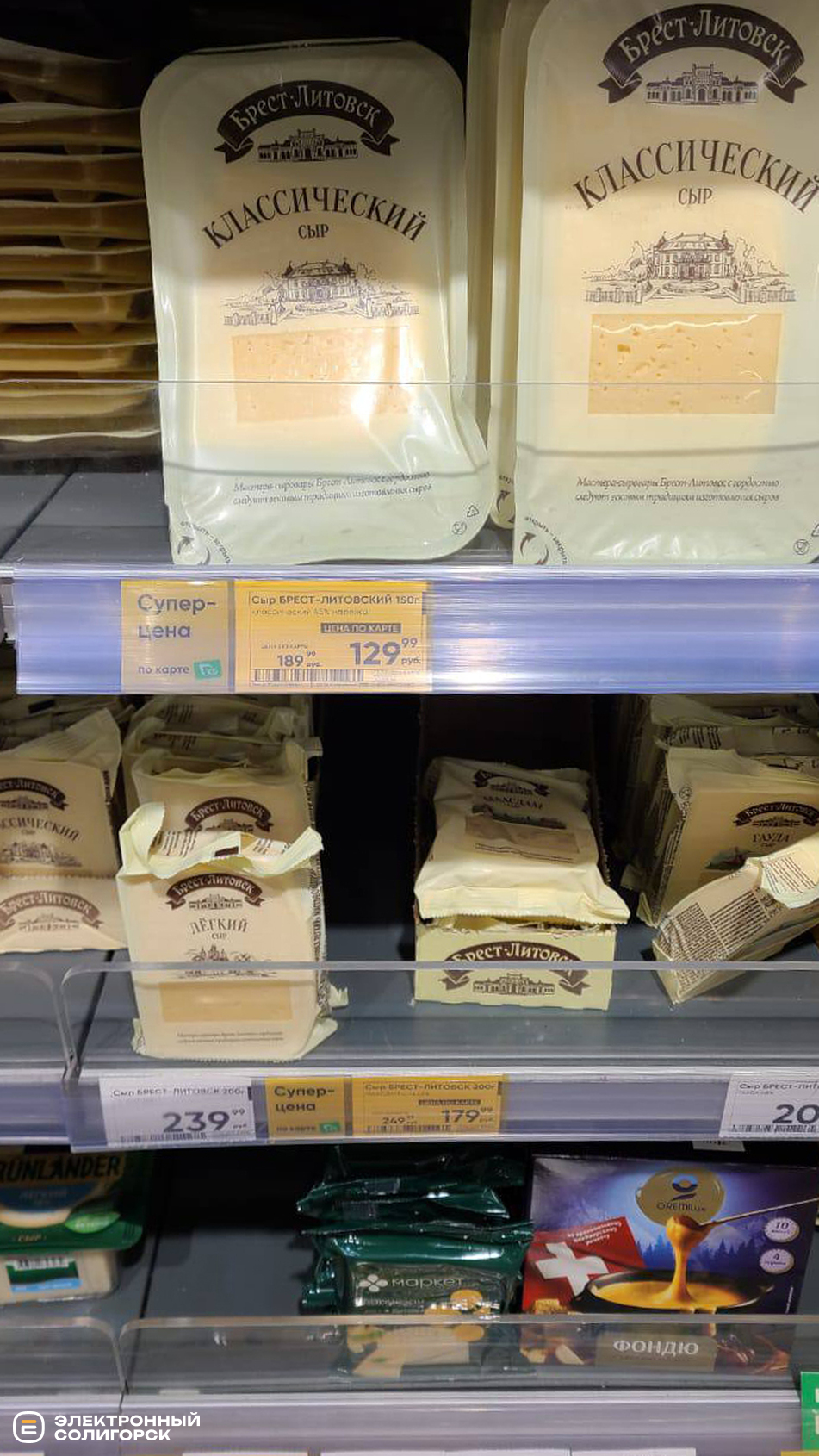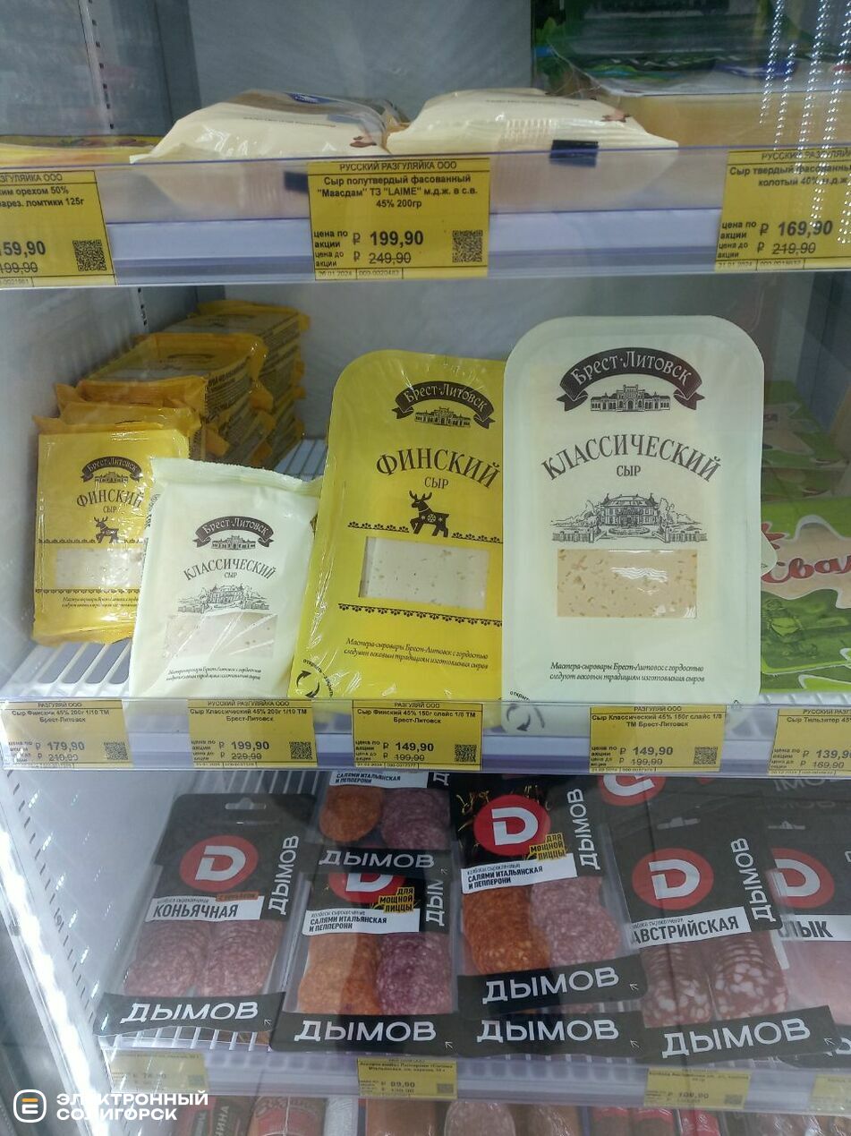 Масло сливочное – 200 рублей (7 BYN), сыры фасованные – 150–200 рублей (5.20–7 BYN).