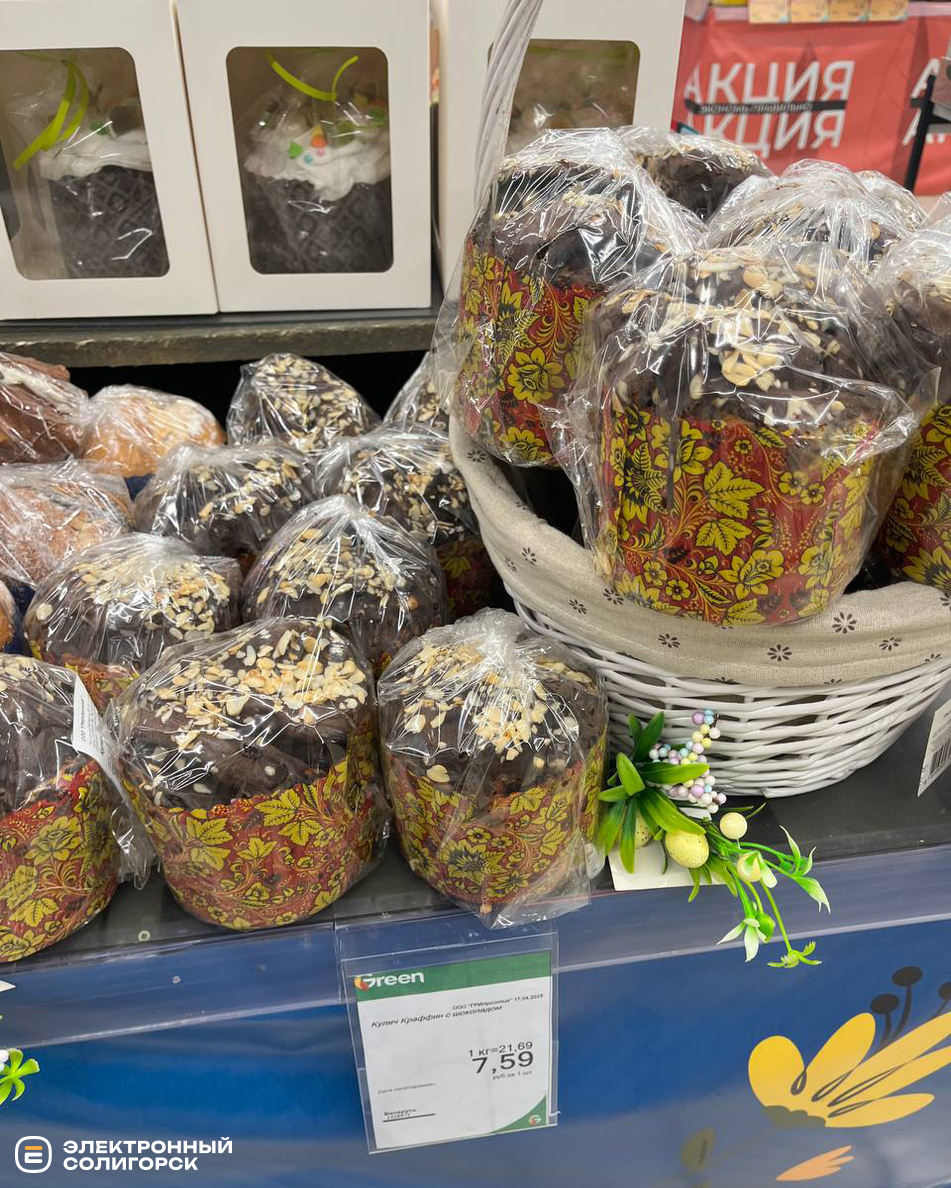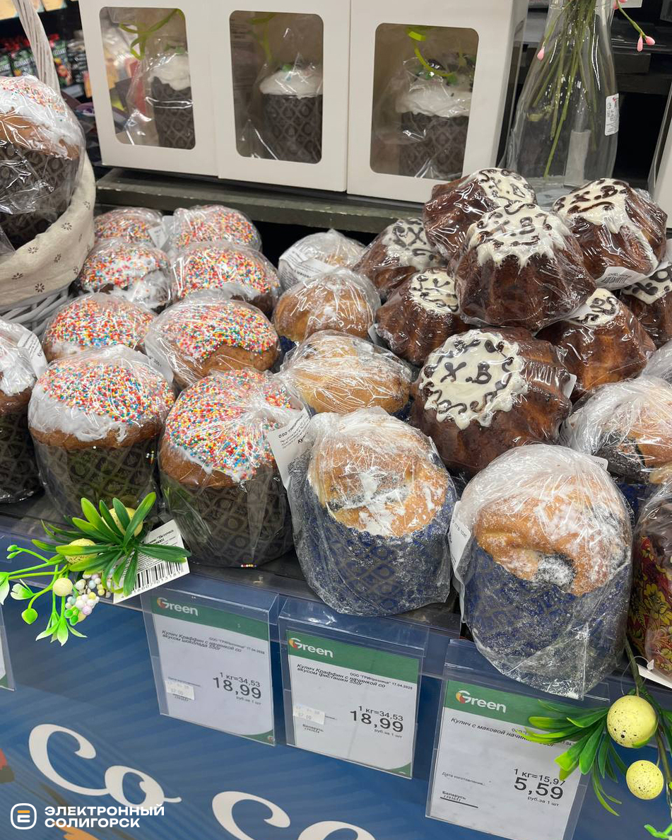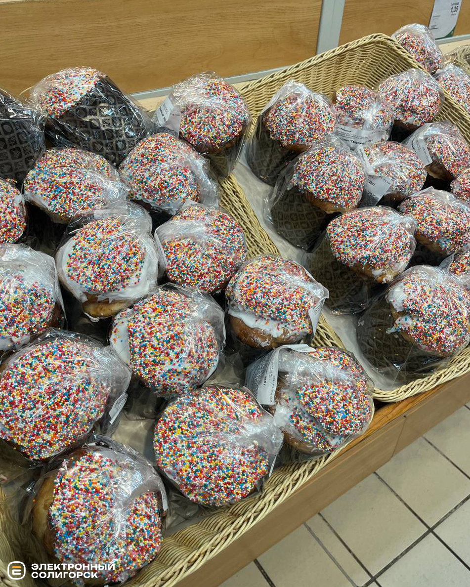 В преддверии праздника Пасхи прилавки хлебных отделов магазинов заставлены куличами и выпечкой на любой вкус: с творогом, посыпкой, клюквой, шоколадом, цукатами и пр.