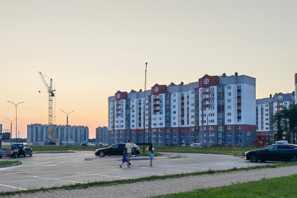Продолжается возведение микрорайона № 22 в Солигорске. Заселяются новые дома. Жильцы новостроек наслаждаются благоустройством: комфортными детскими площадками, велопарковками.