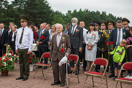 Праздник Независимости Беларуси и 77-я годовщина освобождения Беларуси от немецко-фашистских захватчиков в Солигорском районе начался с традиционного возложения цветов к мемориальному комплексу "Скорбящая мать", находящемуся на развилке дорог возле Старобина.