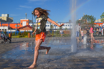В эти, мягко говоря, жаркие дни самое большое удовольствие ловят дети. Особенно когда есть такой классный фонтан у Беларуськалия.