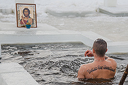 Традиционные Крещенские окунания в иордань (прорубь в виде креста) в праздник Крещения Господня проходят сегодня на Солигорском водохранилище. Купанию предшествовал чин освящения воды православным священнослужителем. Для безопасности купающихся на месте дежурят сотрудники МЧС, скорой помощи, ОСВОД и РОВД. Следует помнить, что зайти в крещенскую прорубь нужно помня о религиозном смысле этого действия, так как омовение в крещенской воде не очищает от всех грехов "автоматически".