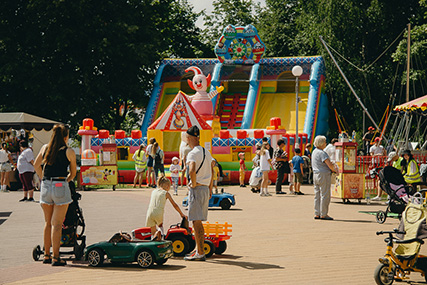 В Парке “Четырёх стихий” сегодня многолюдно. Много праздничных локаций, угощений и развлечений для детей и взрослых.