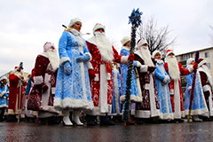 Отсутствие снега и плюсовая температура не помешали состояться традиционному Параду Дедов Морозов и новогодней шоу-программе "Елка-фэст-2015" в Солигорске. Фотокорреспондент "Электронного Солигорска" вместе с пришедшими на центральную улицу города солигорчанами проникся новогодней атмосферой сказочного шествия.