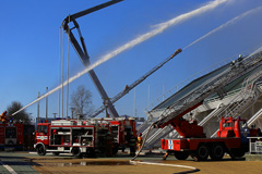 Если кто-то стал сегодня днем очевидцем скопления пожарных машин возле ледового дворца - не пугайтесь и не спешите рассказывать о громком ЧП. Сегодня в Солигорском спортивно-зрелищном комплексе Солигорска проходили масштабные учения МЧС. В них принимали участие: весь состав Солигорского ГРОЧС, а также представители Минского областного управления МЧС. По распоряжению Солигорского райисполкома движение на участке дороги по ул. К.Заслонова от перекрестка с ул.Ленина до перекрестка с ул. Л.Комсомола было перекрыто.