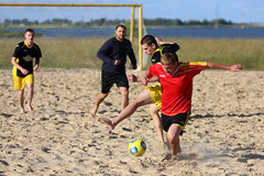 Пока на стадионах Бразилии разворачиваются жаркие футбольные баталии среди лучших команд земного шара, на солигорском пляже тоже кипят нешуточные страсти вокруг мяча. Во вторник, 16 июня состоялся второй игровой день первого Чемпионата Солигорска по пляжному футболу.