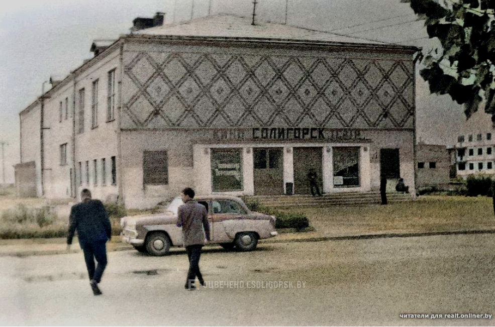 Попался и снимок Солигорска. В кадре — бывший кинотеатр, названный в честь самого города, теперь в наши дни в этом здании — детская школа искусств.