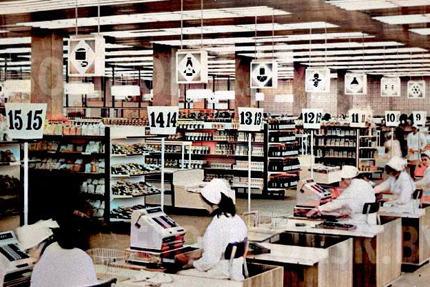 Решили заглянуть в солигорские магазины, когда слов "гипермаркет" и "супермаркет" никто даже не слышал. А перевести фото в цвет нам помогла нейросеть.