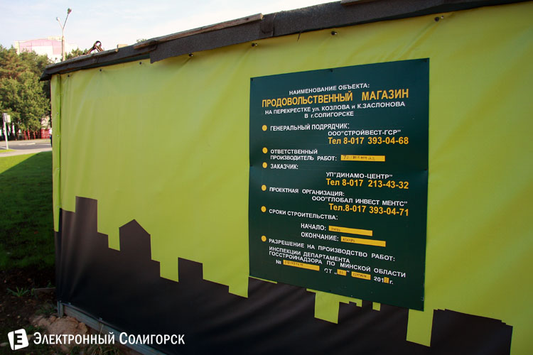 Согласно паспорту объекта, строительство магазина началось в июне. Пока на строительной площадке виден лишь котлован, идет закладка фундамента будущего торгового объекта. Заказчик строительства - УП "Динамо-центр", генподрядчик - "Стройвест-ГСР". Датой окончания строительства в паспорте объекта значится декабрь, вот только год не указан. Остается лишь строить по этому поводу гипотезы. Наиболее вероятная из них такая: строительство планируют завершить в рамках текущего года, поэтому достаточно было указать лишь месяцы...