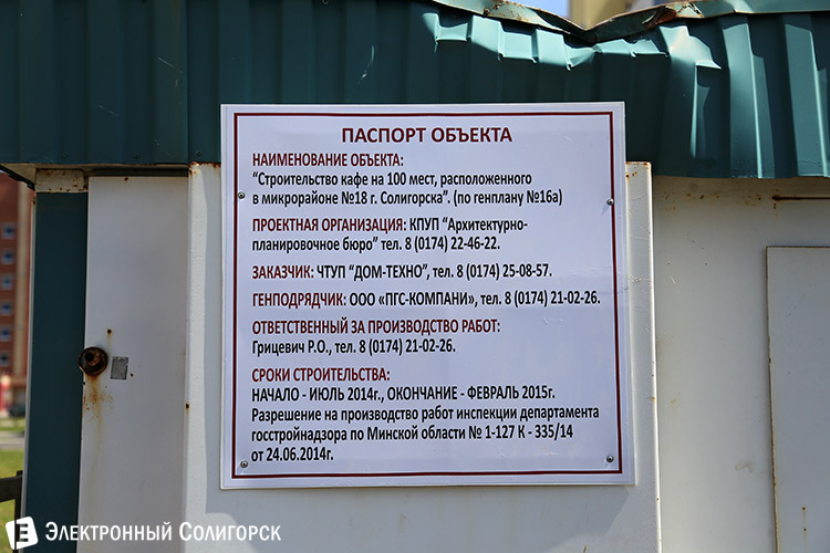Согласно паспорту объекта, завершить строительство кафе планируется в феврале 2015 года.
