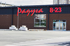 В Слуцке на улице 14-ти партизан завершается строительство нового торгового центра крупной солигорской торговой сети ООО "Торговый дом "Радуга-Свет". На фасаде здания, где ранее размещалась текстильная фабрика, уже произведен монтаж вывески, указано время работы будущего магазина.