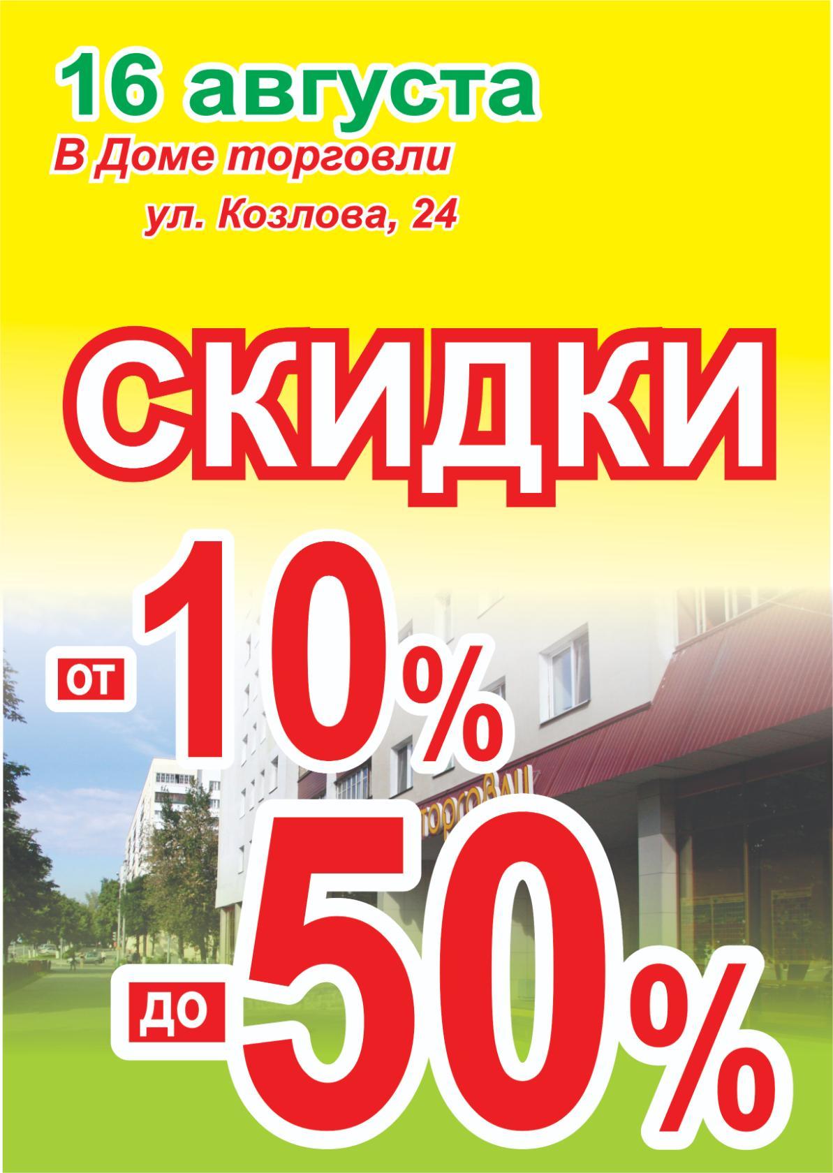 16 августа в "Доме торговли" (ул. Козлова, 24) день горячих скидок от 10% до 50%! |