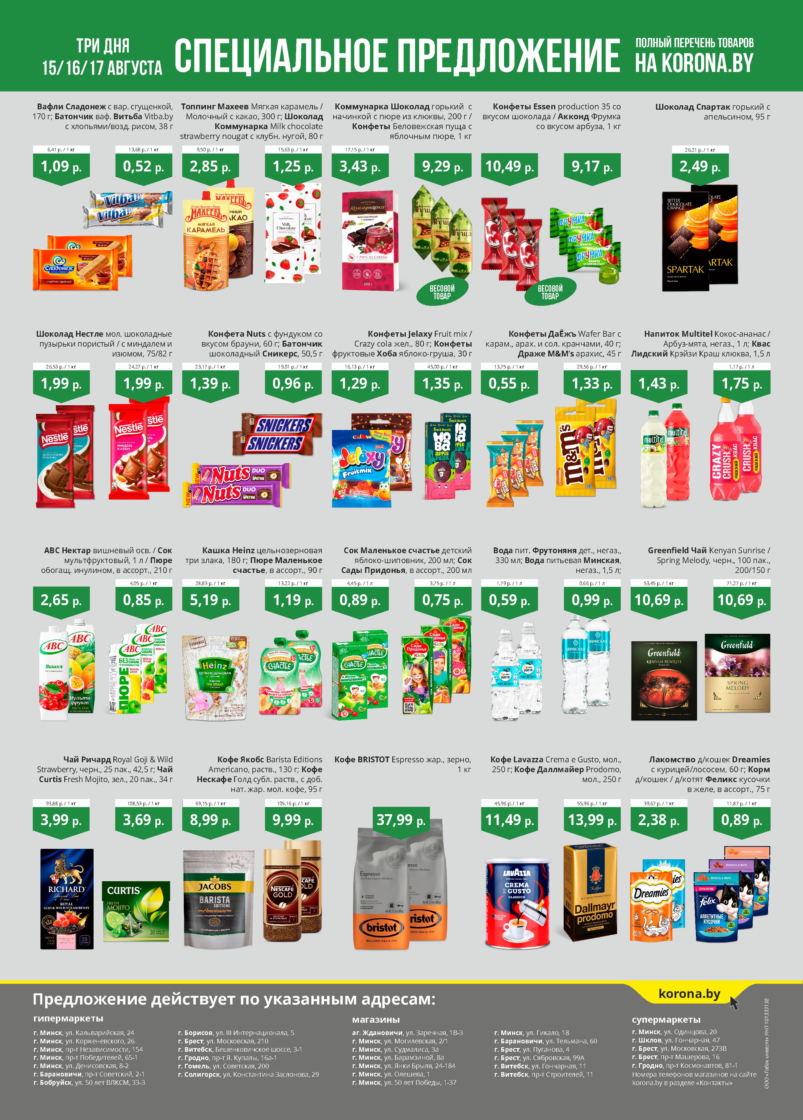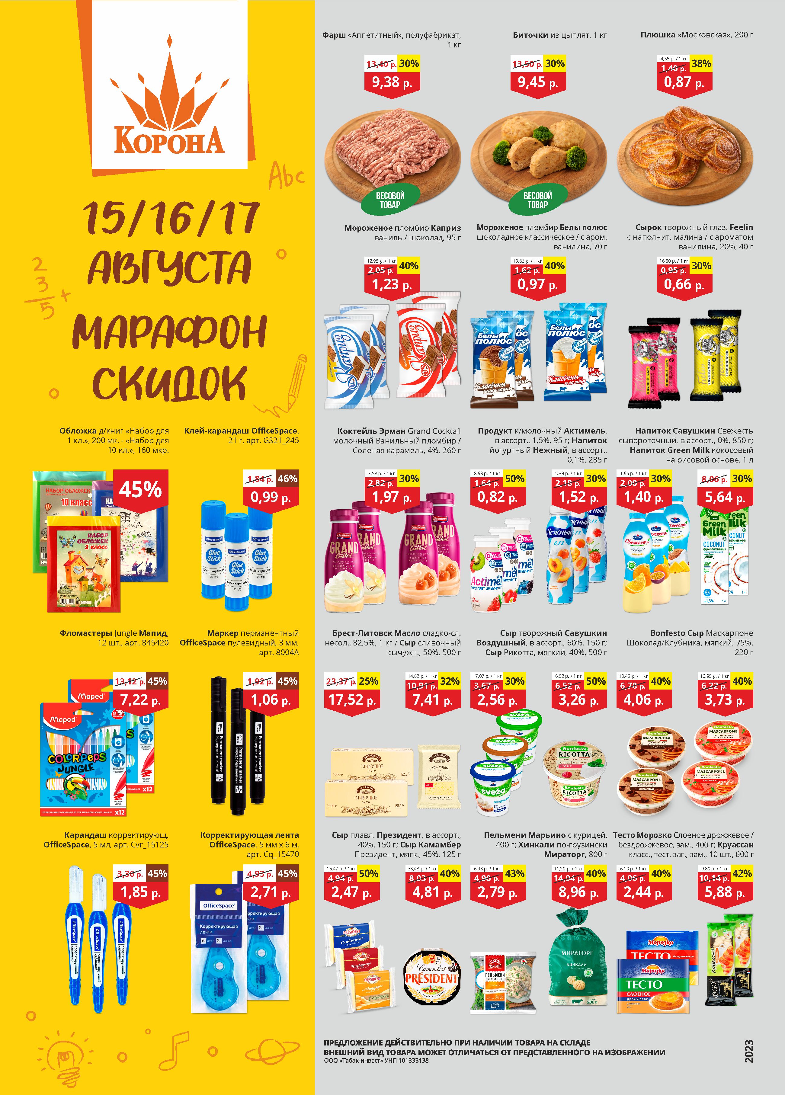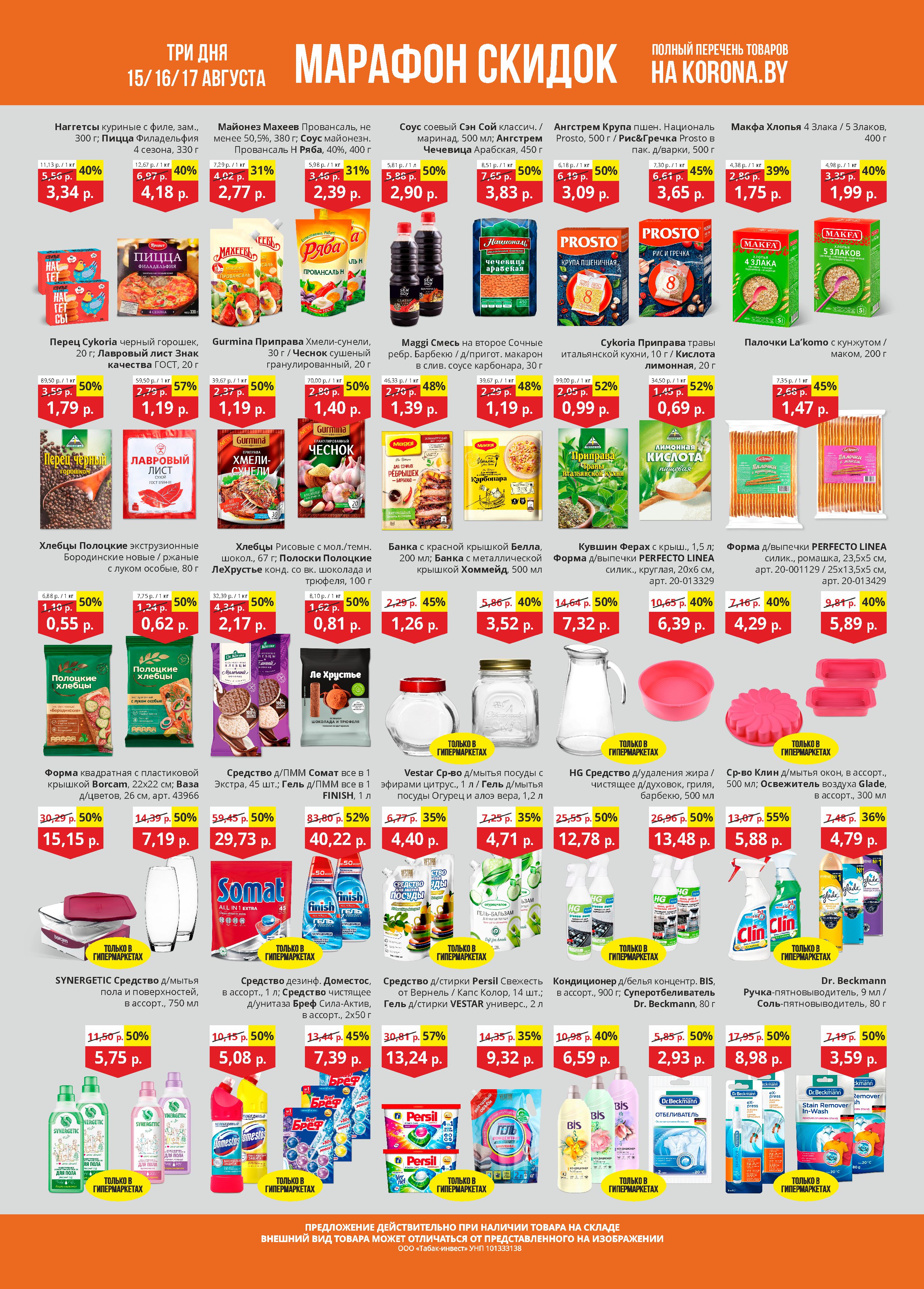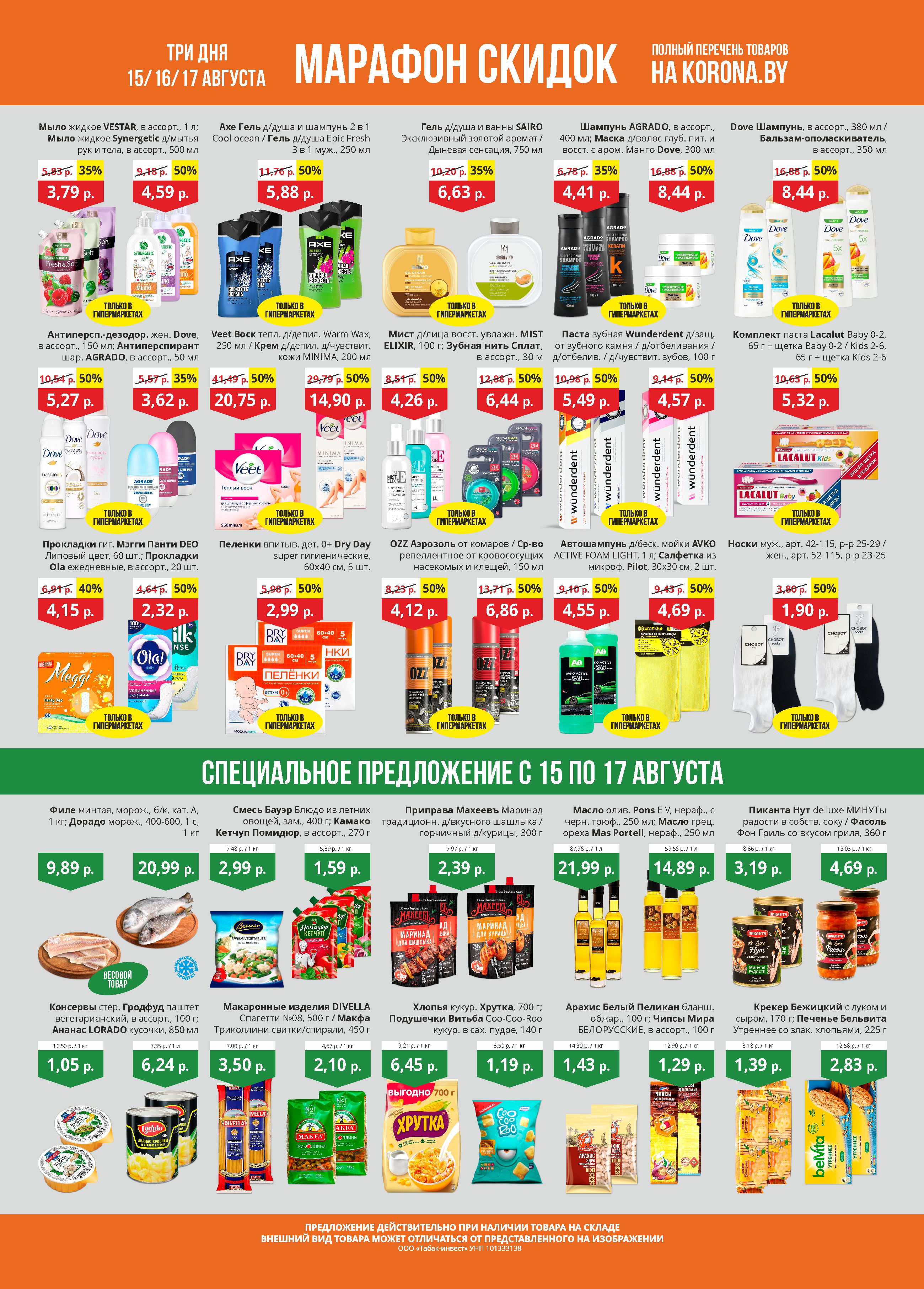 15/16/17 августа в магазинах сети "Корона" "Марафон скидок!".