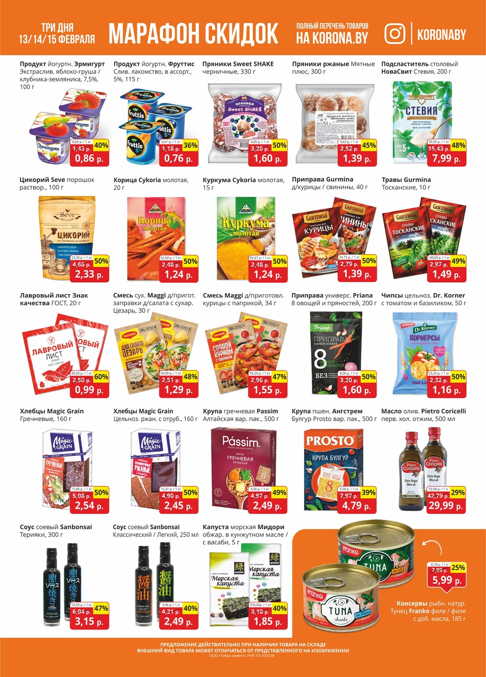 Три дня подряд в "Короне" ценопад! 13/14/15 февраля в магазинах сети любимая акция - "Марафон скидок"!