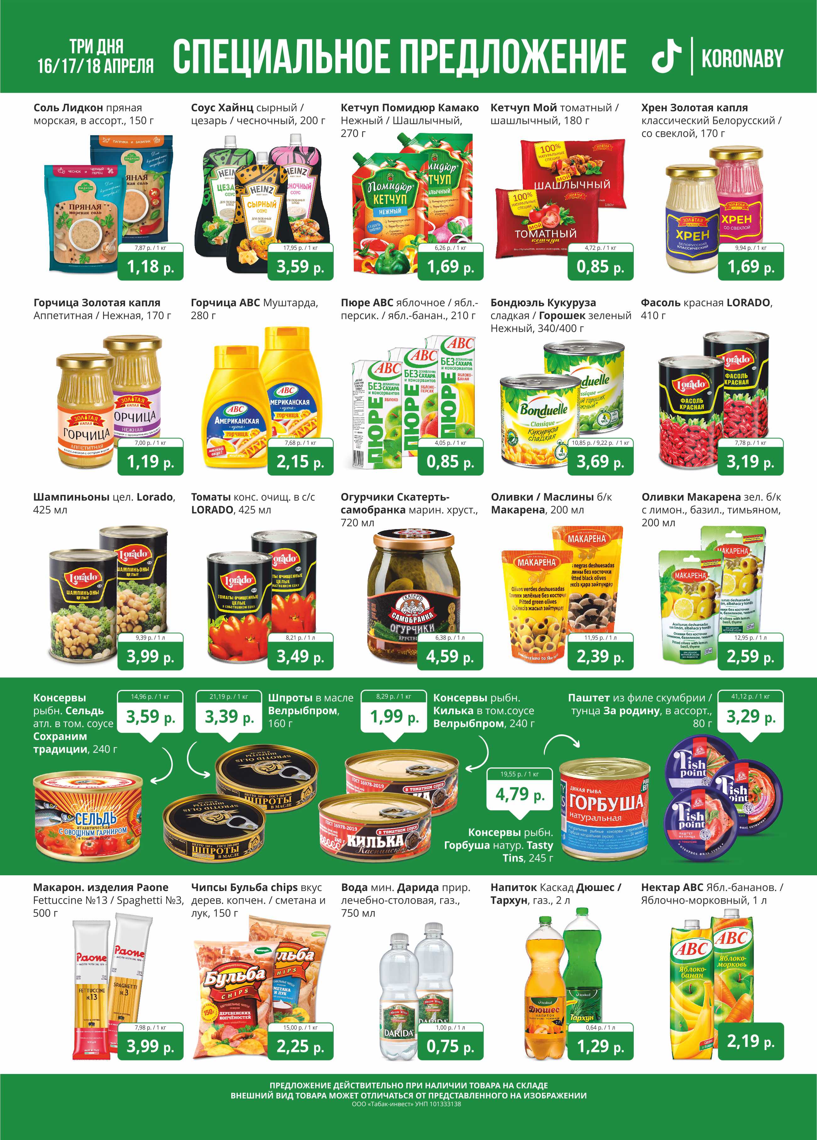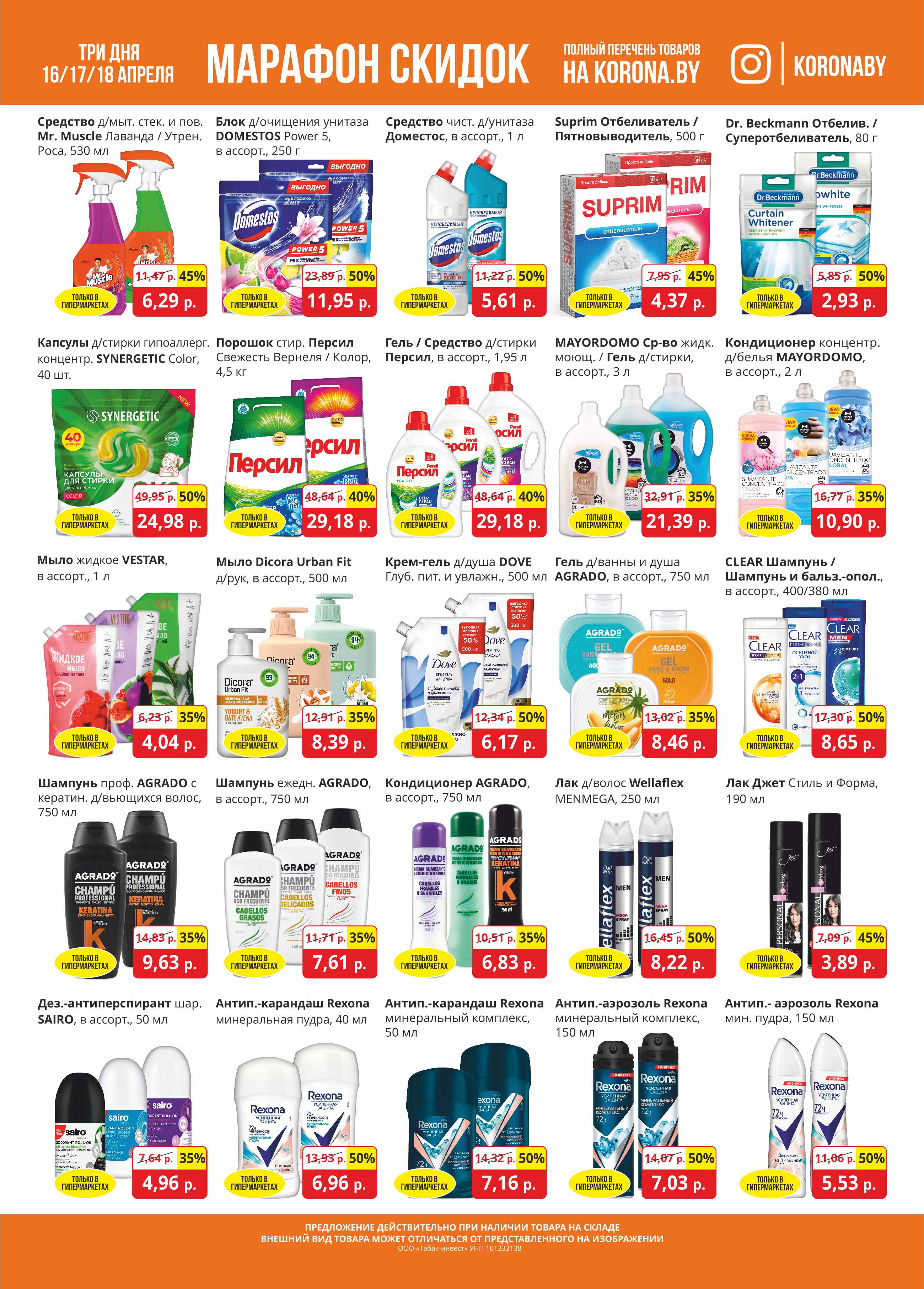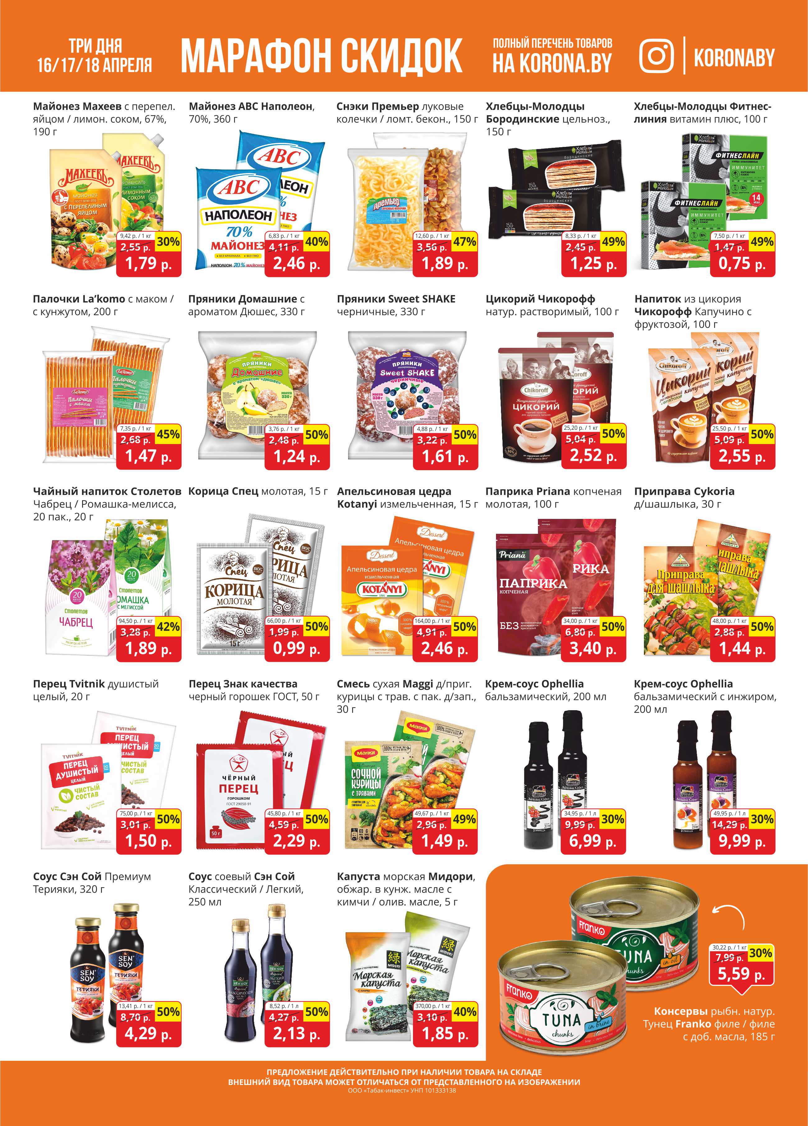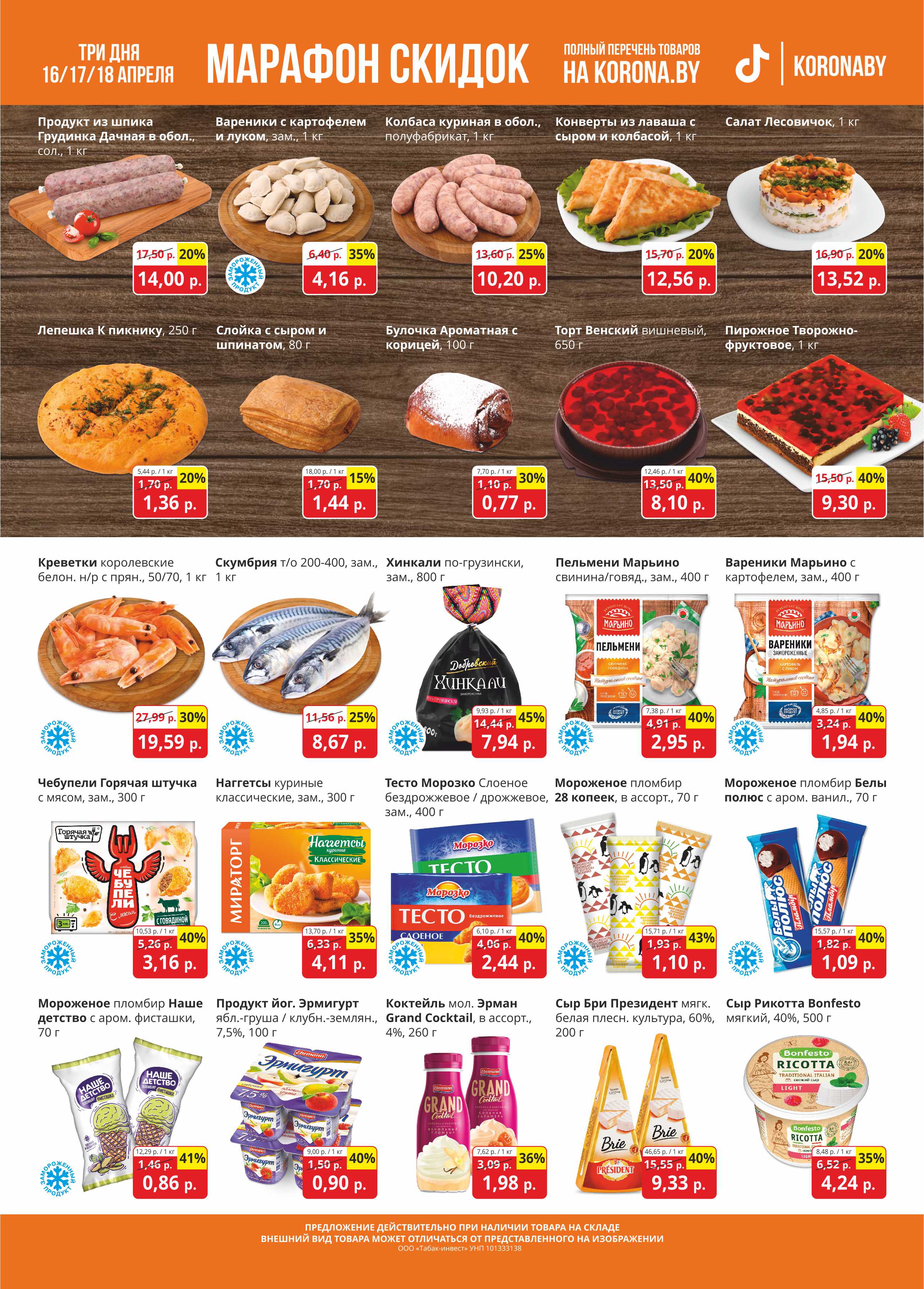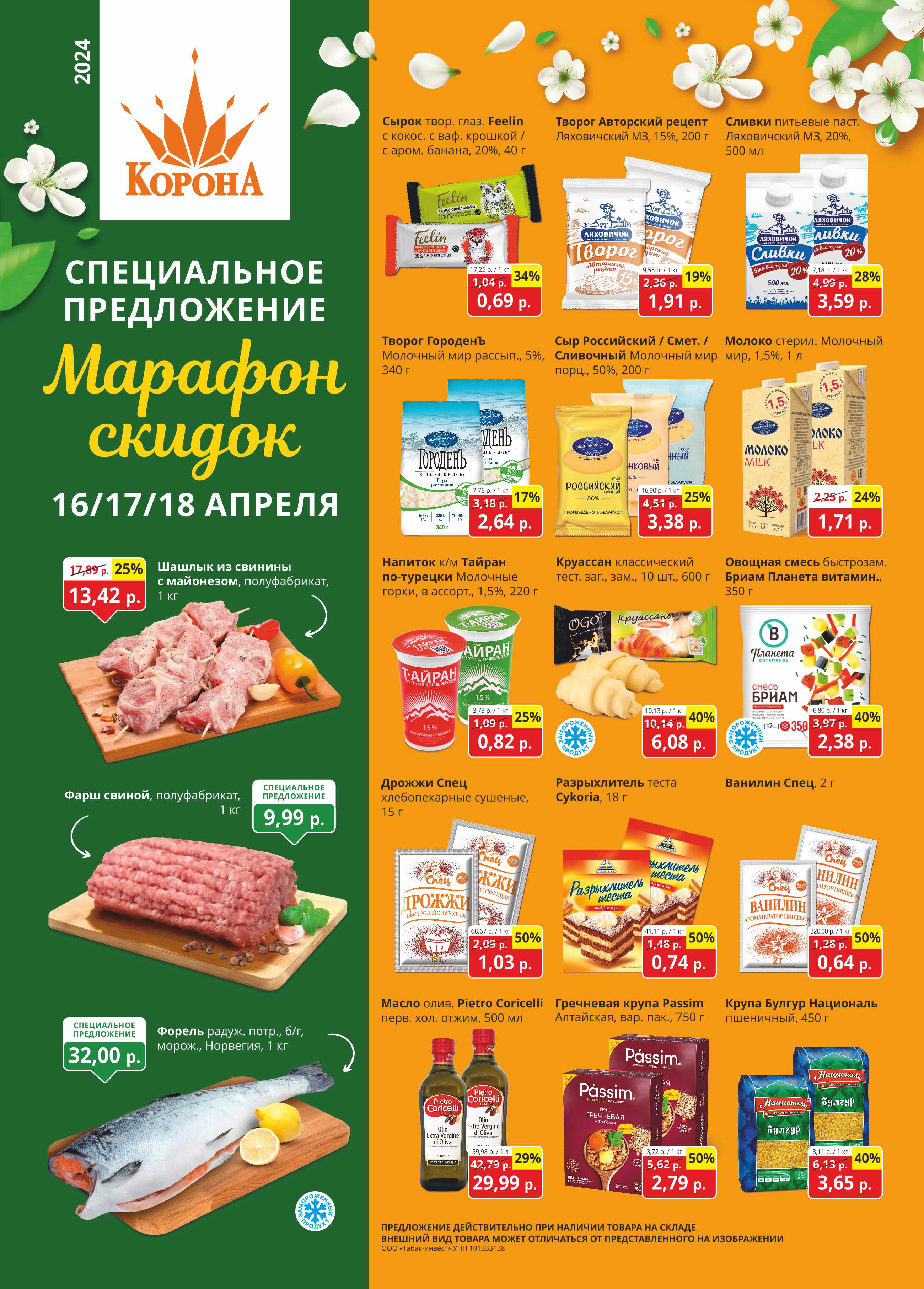 Весна в разгаре, а цены в ударе! 16/17/18 апреля в магазинах "Корона" любимая акция - "Марафон скидок"!