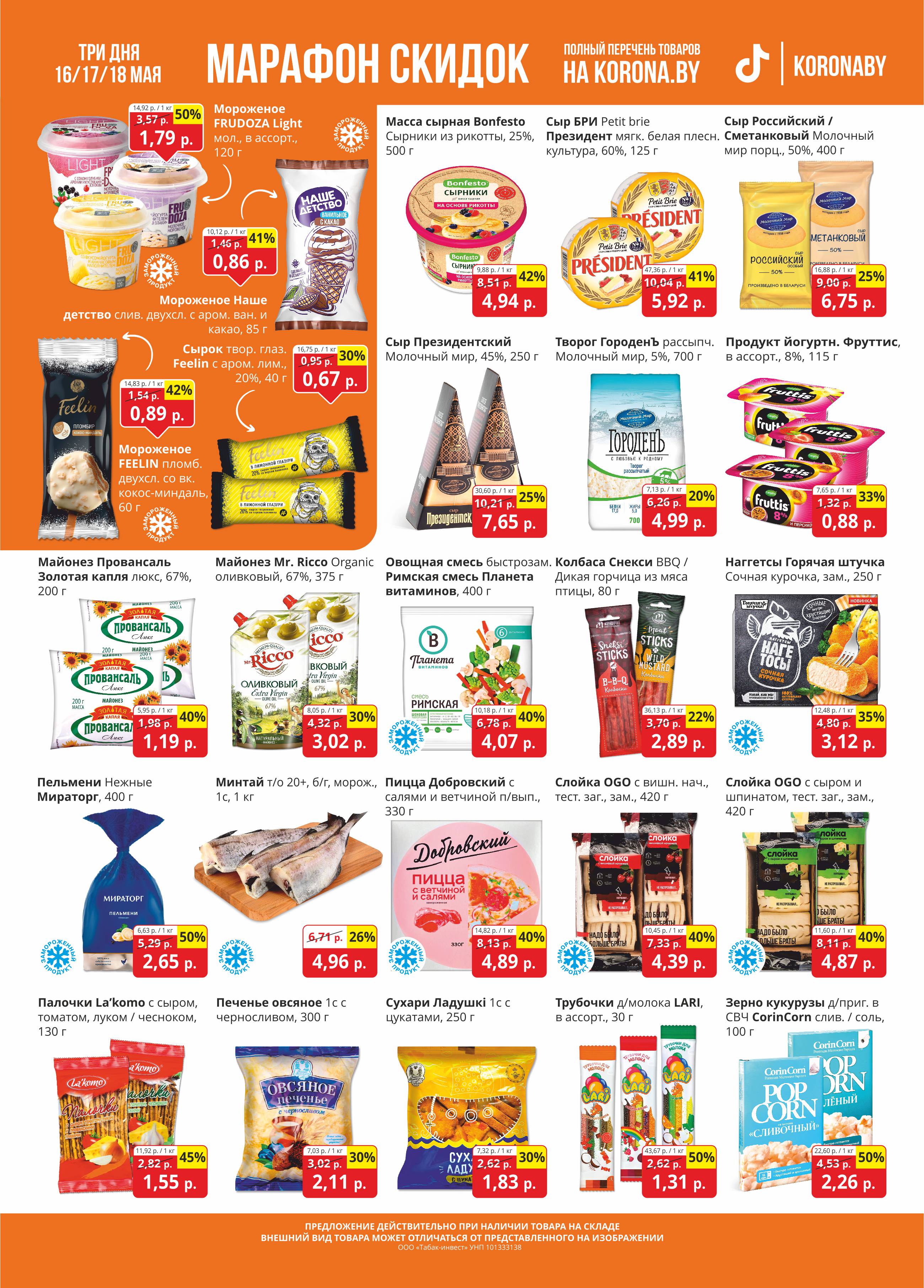 Когда погода не радует, "Корона" согревает скидками! 16/17/18 мая в магазинах сети любимая акция - "Марафон скидок"!