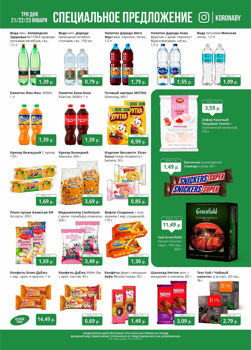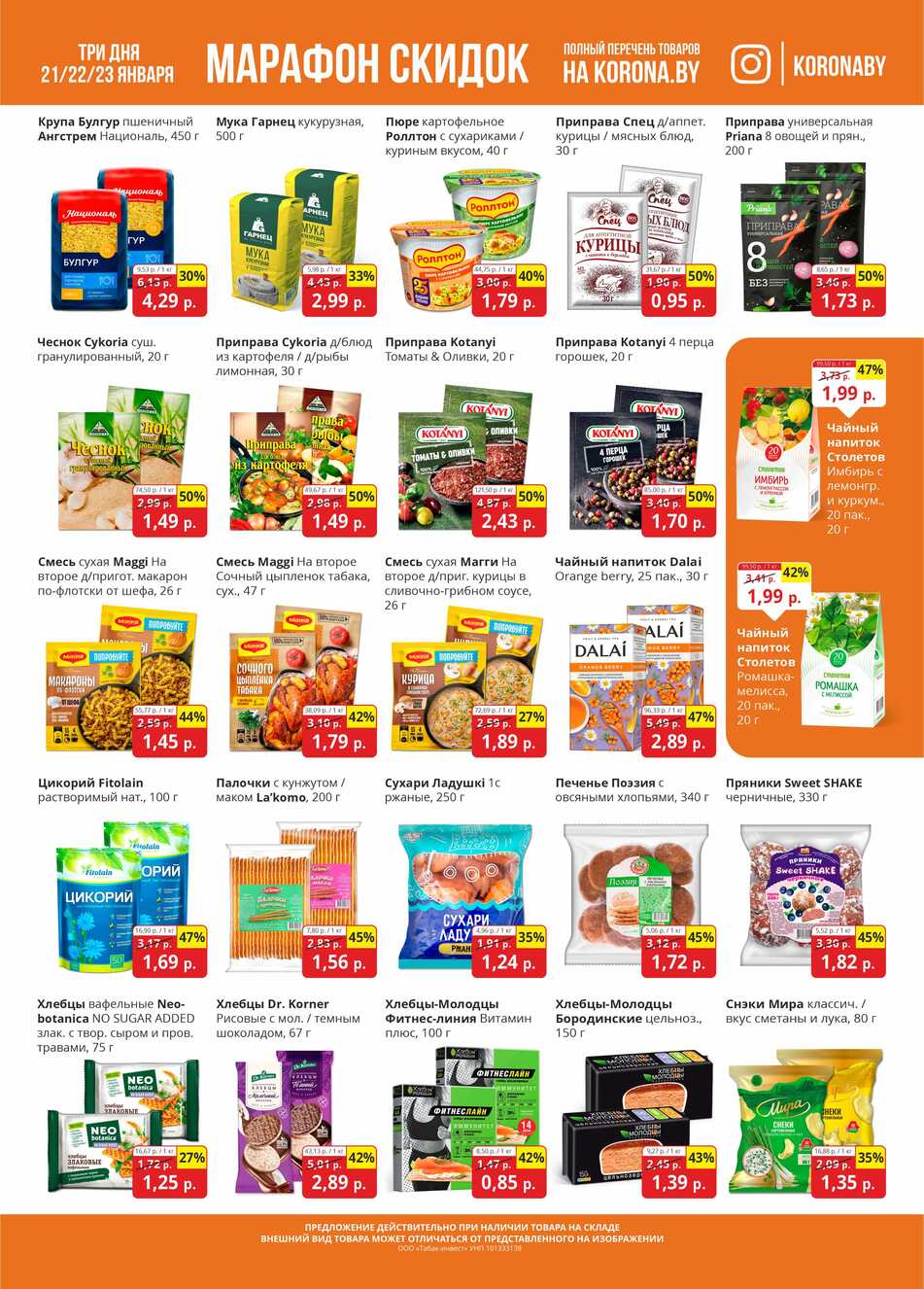 21/22/23 января в магазинах сети "Корона" - "Марафон скидок!".