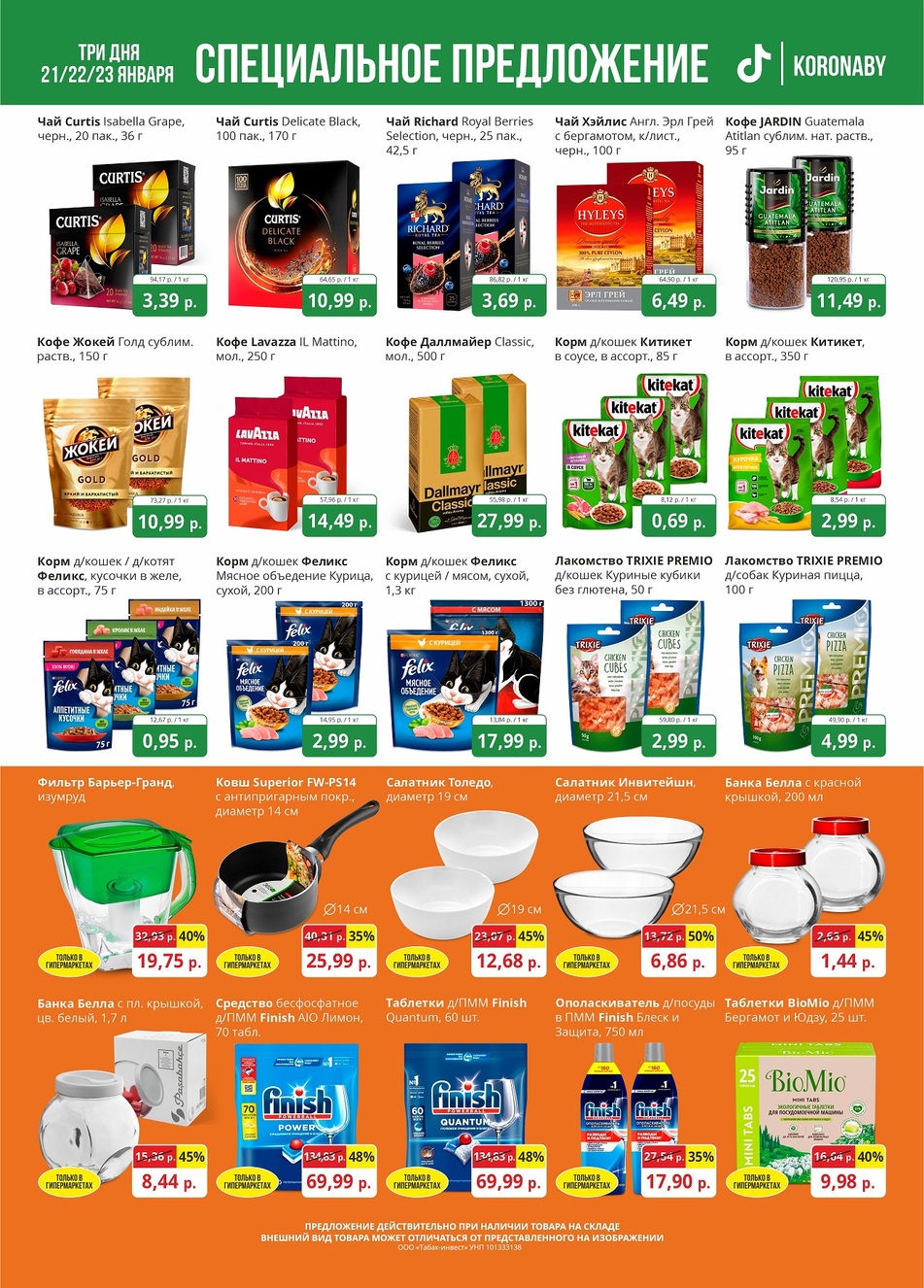 Спешите приобрести продукты к столу, косметику для волос и тела, посуду, корм для животных, бытовую химию и другие товары!