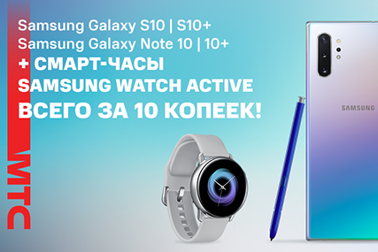 В сети салонов и интернет-магазине МТС при покупке ряда смартфонов Samsung можно дополнительно приобрести умные часы Samsung Watch Active за 10 копеек.