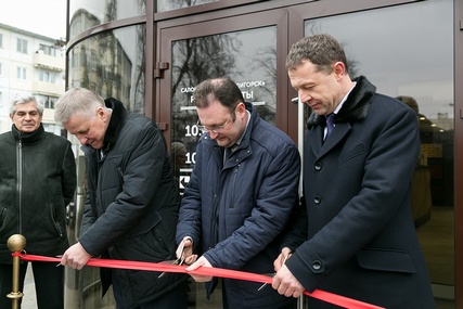 После долгожданного и радостного момента перерезания красной ленты салон "Керамин-Солигорск" распахнул свои двери и встретил первых покупателей.