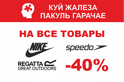 По 13 июля включительно в спортивном магазине MySport – скидка 40% на все товары брендов Nike, Regatta, Fila, Speedo и Converse!