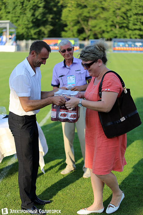 Кстати, необычный розыгрыш состоялся в перерыве. По своим входным билетам зрители матча могли выиграть упаковку сока отечественного производства.
