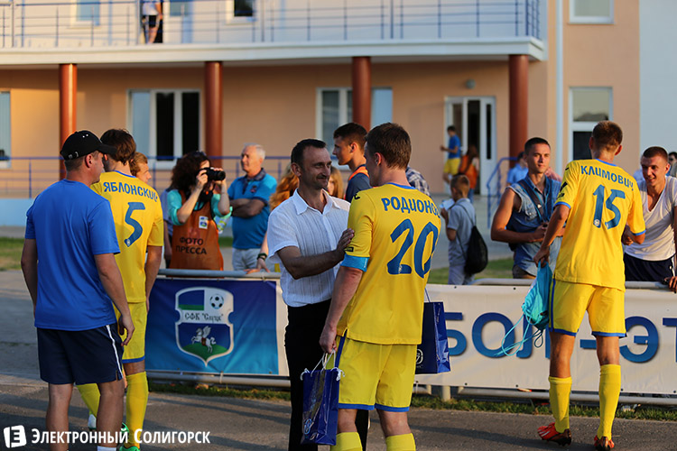 Виталий Родионов получил в нагрузку к голу и победе приз лучшего игрока матча, упакованный в синий фирменный пакетик ФК "Слуцк".