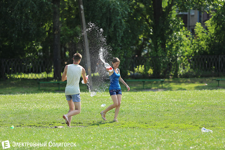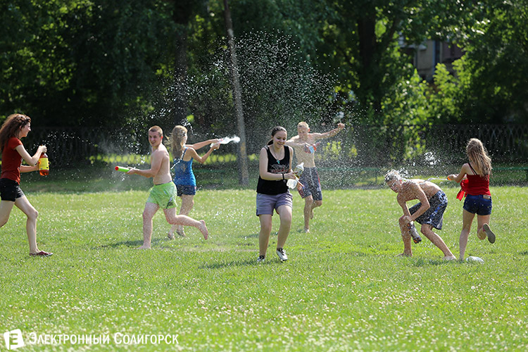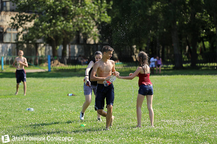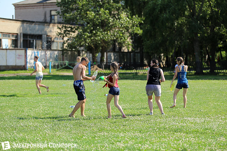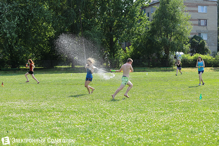 Слуцкие подростки решили спастись от июльской жары в игровой форме. Двое друзей Никита и Егор решили организовать водные бои, пригласив поучаствовать через интернет-паблики всех желающих. В итоге на стадионе слуцкой СШ №6 собралось 9 человек - не так уж много, но и не так уж мало. Корреспонденты "Электронного Солигорска", заглянувшие 18 июля в Слуцк ради футбольного матча, скоротали время, понаблюдав за азартными водными забавами подростков.