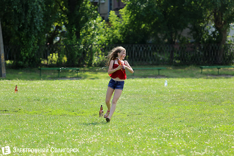 Затем все участники пошли к ближайшей водной колонке, чтобы наполнить бутылки и устроить второй акт веселого противостояния. В войне полов, по словам ребят, зафиксирована ничья. Наверное, это как раз тот самый случай, когда самое главное - участие и отличные эмоции.