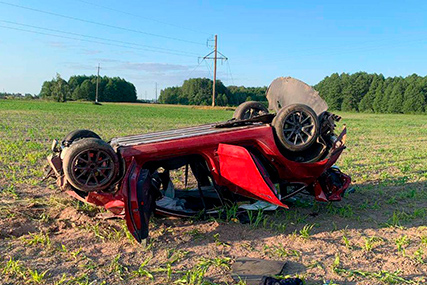 Вчера, 11 июня, около 19:25 на автодороге Н-9442 "Новодворцы-Погост 2" вблизи д. Огородники Слуцкого района водитель-бесправник 1992 г.р., управляя автомобилем "Тесла" и двигаясь в направлении Слуцка, на закруглении дороги не справился с управлением и съехал в кювет. Произошло опрокидывание.