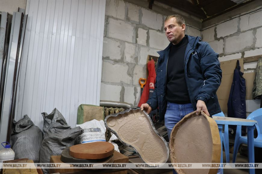 Кстати, за исключением некоторых красок, все материалы, которые использует в своем производстве предприниматель, белорусского производства. За формами для изделий мужчина ездит в столицу, ну а сбыт пока налажен прямо в своем районе.
