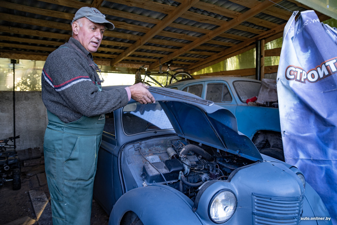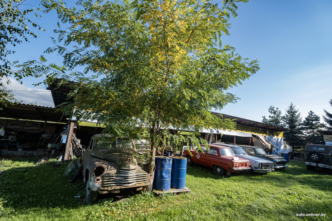 В коллекции Владимира около 40 машин: примерно 15 из них восстановлены и готовы в любой момент принять участие в какой-нибудь ретровыставке. Своя мастерская с холодным и теплым цехом у нашего героя есть на одном участке с его домом — навесы скрывают бесчисленное количество запчастей и уставших (или не очень) кузовов. Еще одна мастерская находится на территории школы. Несколько гаражей с машинами разбросаны по Козловичам и Слуцку. Какие-то принадлежат Владимиру, другие он арендует.