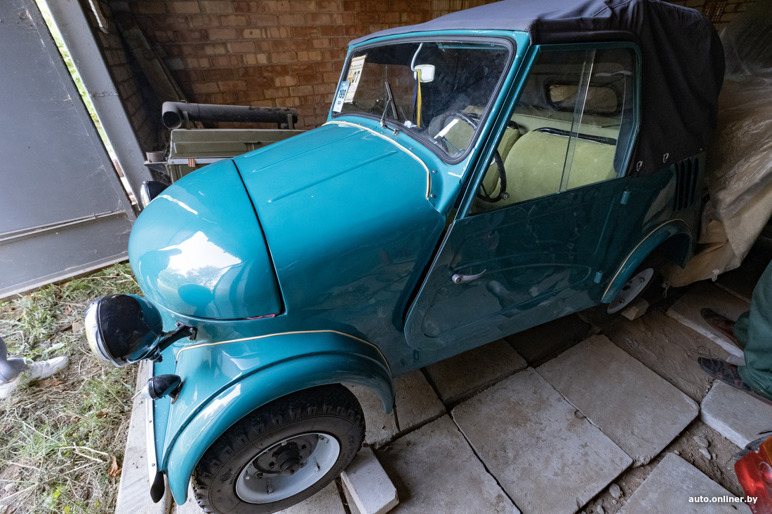А вот, уже в другом гараже, скучает легендарная инвалидка-моргуновка СМЗ С-ЗА, которая выпускалась с 1958 по 1970-е годы. В автомобиле в свое время использовался мотоциклетный двигатель Иж-49 мощностью 8 лошадиных сил.