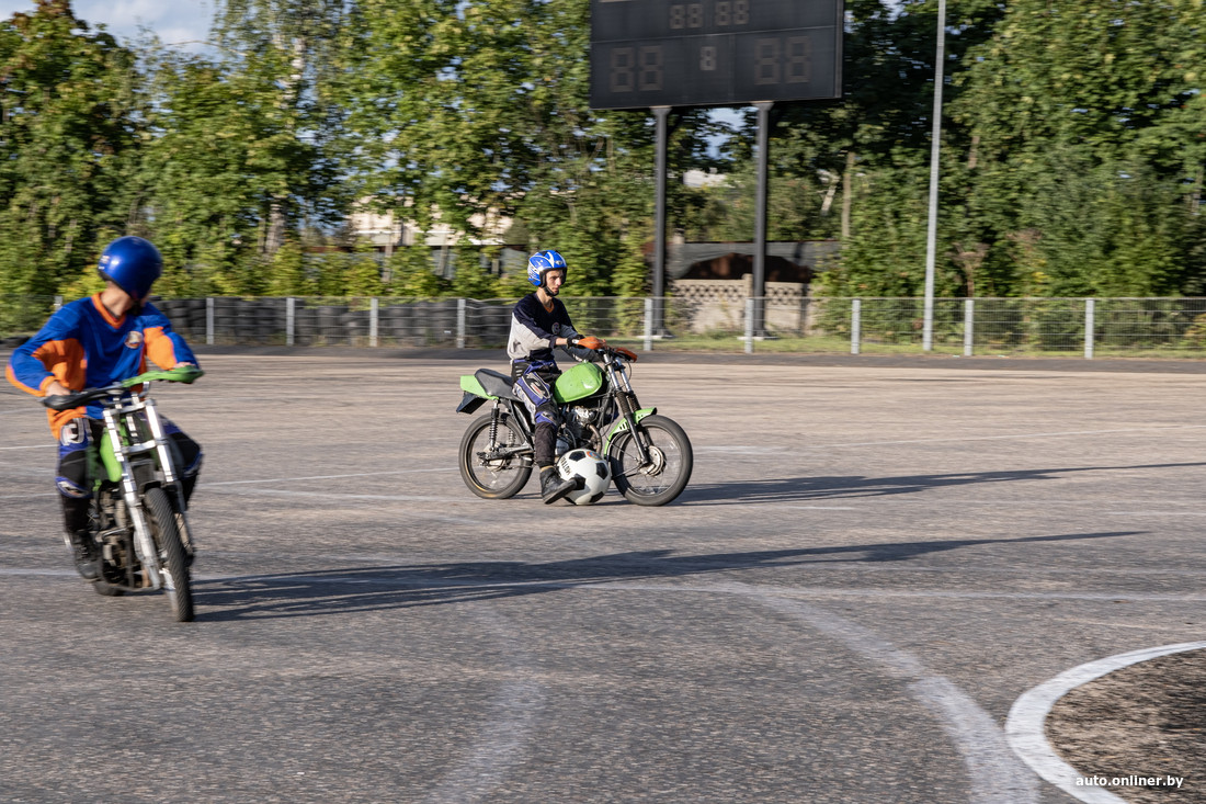 Ученики нашего героя в это время, затолкав в гараж очередного донора, собираются на тренировку по мотоболу. Да, к соревнованиям по футболу на мотоциклах их тоже готовит наш герой. "Пока не в лидерах, но в чемпионатах участвуем", — делится команда.