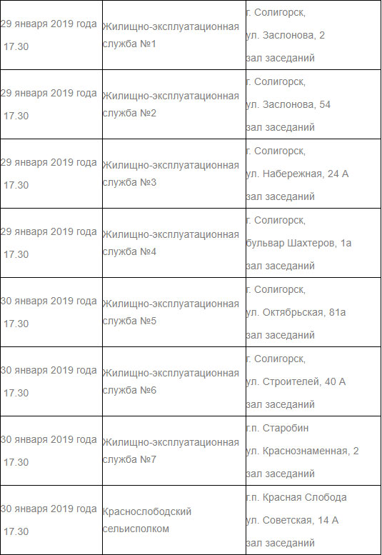 Жителей Солигорска и Солигорского района приглашают 29-30 января 2019 года на отчеты депутатов Солигорского районного, Минского областного Советов депутатов с участием представителей Солигорского районного исполнительского комитета и СГУПП "ЖКХ "Комплекс" о проделанной работе за 2018 год.