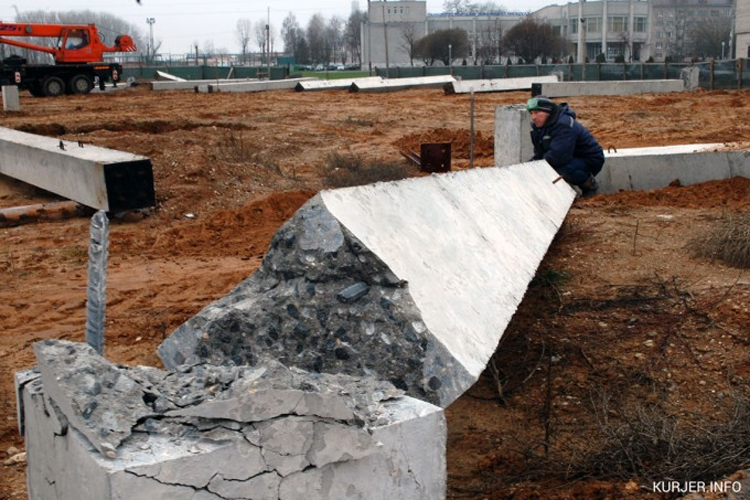 В Слуцке с начала декабря на улице Солигорской идёт демонтаж несущих конструкций, которые должны были стать остовом здания супермаркета «Евроопт». Ранее kurjer.info сообщал, что в августе 2014 года застройщик начал строительство супермаркета площадью 4 тыс. кв. м. Однако в последующем он выразил желание уменьшить первоначально заявленную площадь.